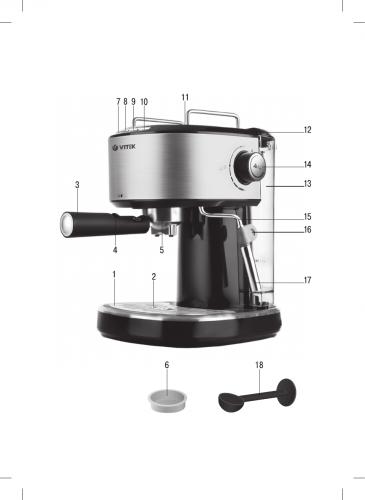 Далеко не все рожковые кофеварки умеют сами останавливать подачу воды. Изрядный пример от производителя первого эшелона – Delonghi EC685 (кстати, на момент написания данного обзора Vitek 1526 стоит не сильно дешевле). Так вот, каждая из двух клавиш 1 и 2 порций активирует подачу определенного объема кофе. На заводе прошиты программы работы для одной чашки – 20 секунд, для двух – 40 секунд. Это именно работа помпы в секундах.