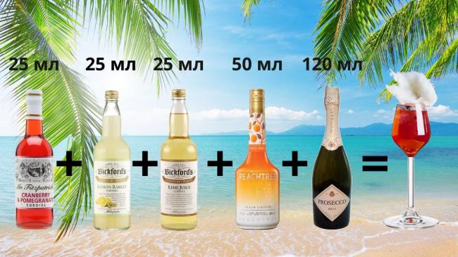 Дамский коктейль с ярким вкусом и красивой подачей.