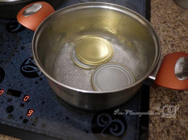 - Вылить кипящий сироп в банку до «плечиков», закупорить ее стерилизованной крышкой, затем перевернуть и остудить в укутанном виде.