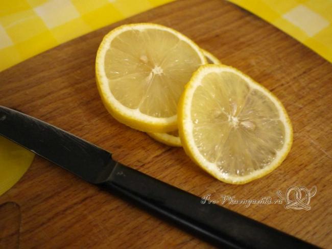 Нарезанный кусочками лимон добавляется в уже готовый напиток, непосредственно перед закупориванием.