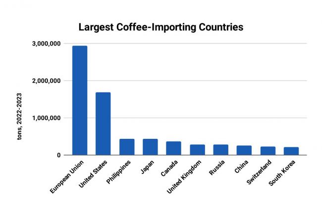 These are the top ten major coffee importing countries in the coffee year 2022/2023 per thousand 60 kg bags []: