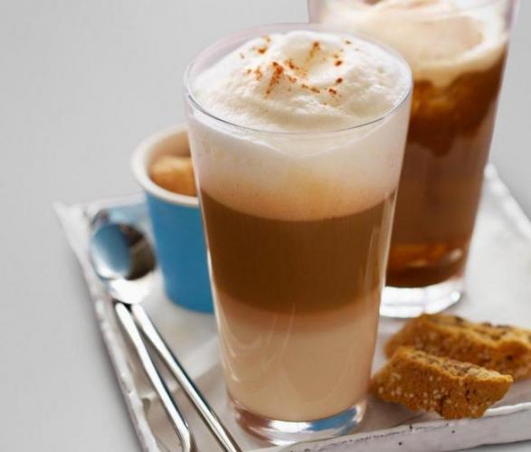 Жарким летом латте может подаваться в охлаждённом виде и служить отличной альтернативой мороженому.