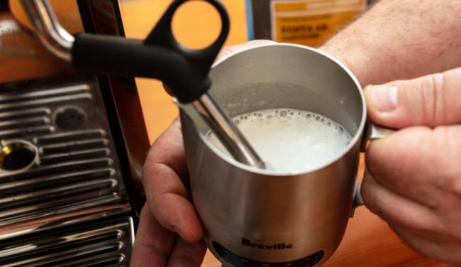 - В первую очередь нужно подогреть молоко. Совет: чем выше температура молока, тем более густой получится взбитая пена.