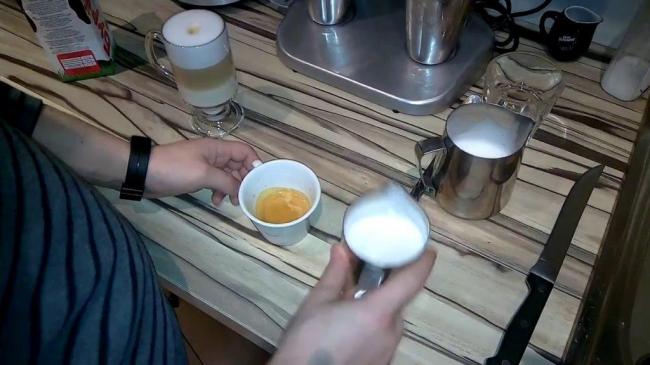- Взбейте молоко прямо в чашечке эспрессо,
