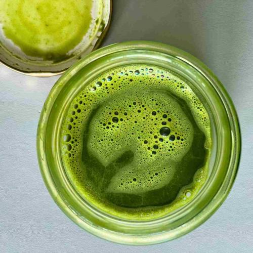 By adding water and the powder to a jar and shaking it well, we got a foam top and no clumps. However, with the jar-shaking method, you won’t get microfoam froth at the top layer of your matcha. If you like the creaminess of the froth, then opt to use a bamboo whisk or hand whisk.