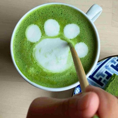 For our recipe, we made a cute cat paw by ending our milk in the centre of the cup. Then, we simply scooped out four small amounts of the remaining milk foam to make cute little toe beans. It’s the easiest way to make matcha latte art and adds a lovely touch to our drink.