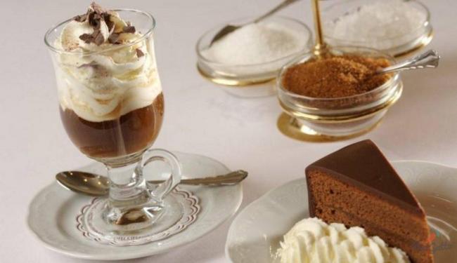 кофе Maria Theresia Императрица венского кофе изготовлена из большого мокко с примесью сахарной пудры и взбитых сливок с апельсиновой цедрой.