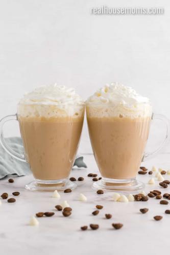 Milk – as with any latte, you’ll need some form of milk to finish off your mocha latte. I prefer to use whole milk because it gives my drink a deliciously rich flavor that makes me feel like I’m sipping a fancy latte at a coffee shop in Paris. But, if you’re looking to cut a few calories out of your white chocolate mocha latte, go ahead and use your favorite type of milk!