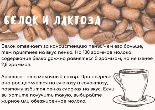 Для капучино молоко должно содержать не менее 3% белка.