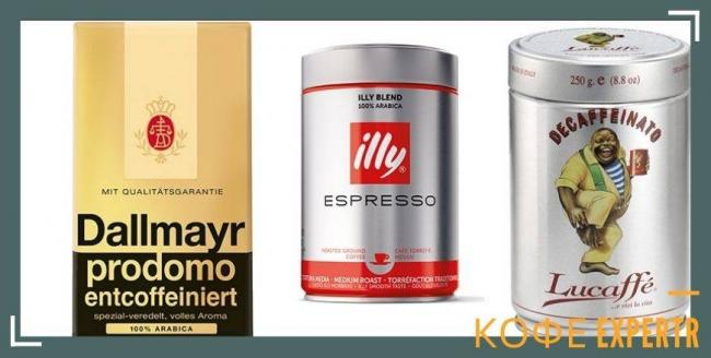 Сегодня есть большой выбор декофеинизированного кофе: зернового, молотого и растворимого. Для удобства покупателей упаковки декафа помечаются цветными маркерами.