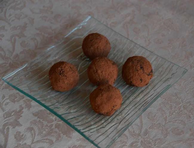 Из полученного теста необходимо сформировать шарики и вывалять в какао. Конфеты выложить на тарелку, смазанную растительным маслом. Лакомство необходимо поставить в холодильник на полчаса для застывания.