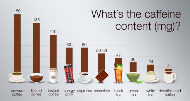 Кому стоит убрать из меню продукты питания, где больше всего кофеина