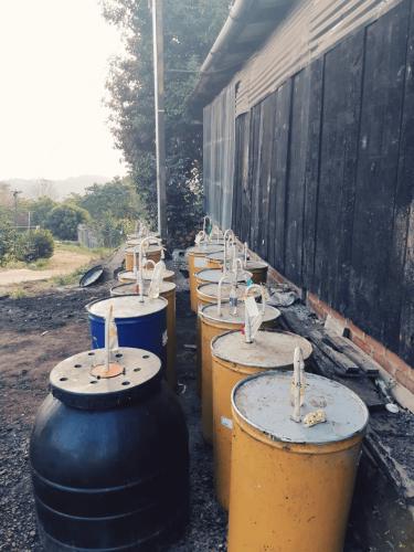 Сушат зерна либо на патио, либо на африканских кроватях, camas africanas.