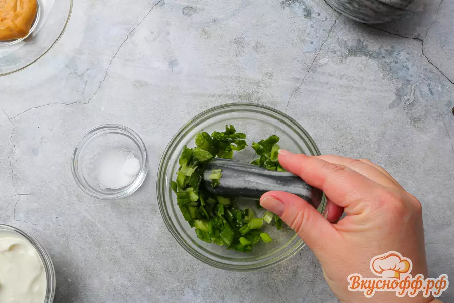 - майонез (можно заменить сметаной) – по ложке на порцию;