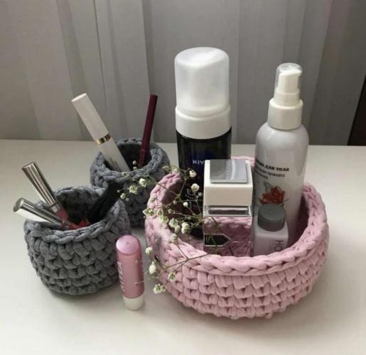 Шкатулку для хранения косметики легко можно связать собственными руками. Однако стоит выбирать пряжу поплотнее и потолще, чтобы изделие держало форму. И позаботьтесь о подкладе, в случае форс-мажора пряжу отстирать будет непросто.
