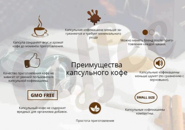 - применение капсул, освобождающее время при приготовлении ароматного напитка;
