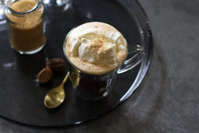 Раздавите мускатный орех и украсьте сверху.