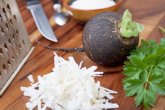 Для получения сока редьку надо натереть на тёрке и отжать через марлю