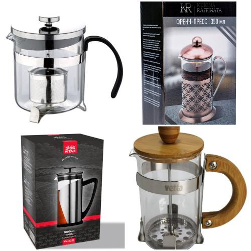 - Vetta – китайский френч-пресс бюджетной ценовой группы товаров. Заварочная емкость стеклянная, имеются металлические и пластиковые элементы.
