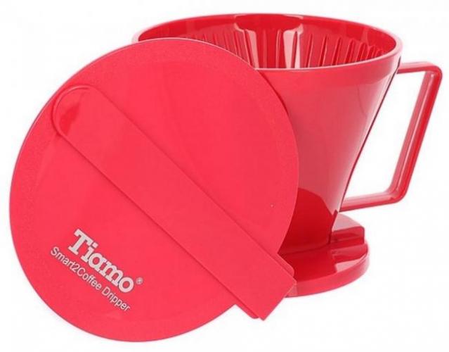 Эта модель характеризуется наличием встроенного клапана, который перекрывает отверстие у основания воронки. Подобное решение позволит заваривать кофе не только по технологии пуровер, но и методом френч-пресс. За счет наличия вспомогательного фильтра, напиток получается чистым и практически без осадка. Во избежание ошибки при выборе следует отметить, что фильтры следует заказывать отдельно. Предпочтение рекомендуется отдать моделям, рассчитанным на 2 чашки. Корпус окрашен в красный цвет.