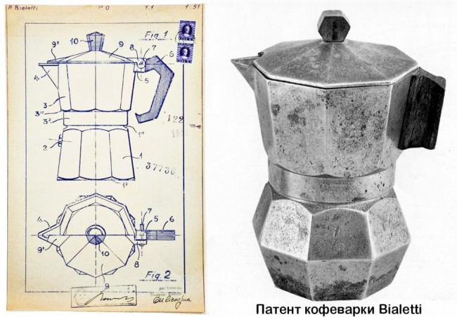 1-ый патент на гейзерную кофеварку был получен в 1933 году, в Италии. Фамилия изобретателя стремительно стала известной, а позже и нарицательной – Биалетти. Компания с таким заглавием до сего времени существует и выпускает гейзерные кофеварки, а в неких частях Европы итальянский кофейник именуют кофеваркой Биалетти либо просто биалетти.