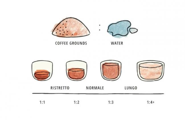 We have a simple and memorable Ristretto, Espresso ratio table (as shown) and for comparison, try making coffee shots in this ratio, taste them to see the difference. Of course, this is not all about the espresso ratio. Depending on the region and culture, there will be different ratios of espresso.