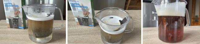 В любую емкость (чашка, контейнер) налить кипяток и положить чистящее средство в таблетках, из расчета 2 таблетки на 0,5 л. горячей воды. Таблетки сразу начнут растворяться и пениться.