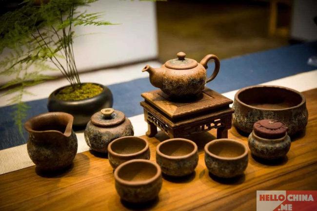 Вода , которой проливается чайный лист , не должна контактировать с металлом. Очень важен и материал посуды. Церемониальная посуда отличается от обычной — она сделана либо из глины , либо из фарфора.