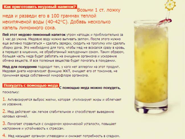 Медовая вода с лимоном для похудения утром и перед сном
