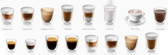 Чтобы получить другой напиток, необходимо к одной части эспрессо добавить ингредиенты в таком количестве: