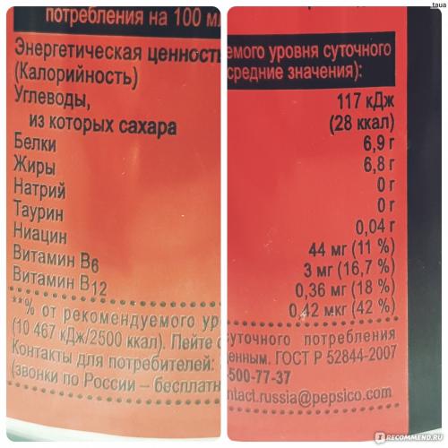 - количество кофеина, содержащееся во всех компонентах энергетика;