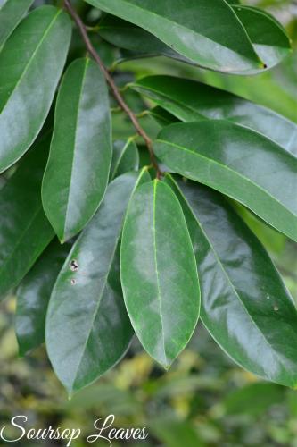 Soursop leaves are dark green, shiny, large, and oval-elliptical in shape. Like other leaves, it has a water content of more than 60%. The rest of the solids are made up of proteins, insoluble cellulose fiber, hemicellulose, and minerals such as magnesium, iron, and copper.