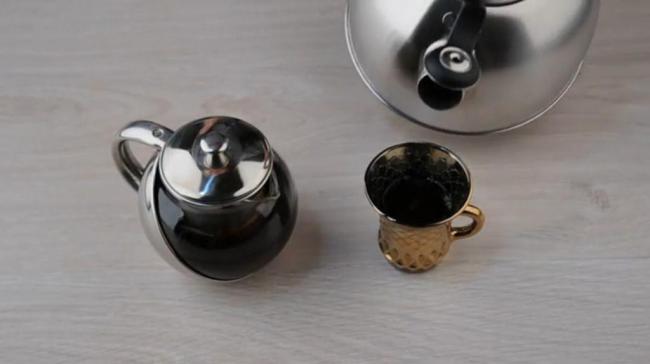Чтобы заварить турецкий чай, недостаточно просто залить его кипятком. В чайник побольше наливают воду и ставят на огонь. На него ставят тот, что поменьше, — пока пустой. Когда вода закипит, в нагревшийся маленький чайник насыпают чай, причем довольно много — из расчета 4–6 столовых ложек на четыре стакана кипятка.