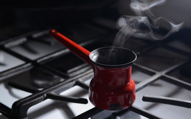 Вначале на плиту устанавливают турку и только потом включают нагрев.