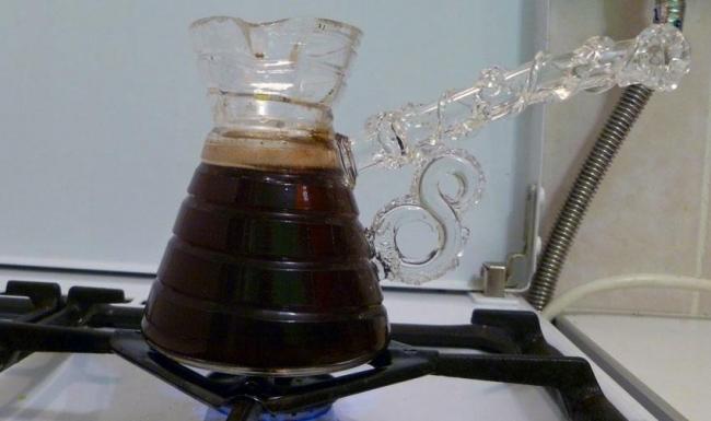 Прозрачный жаропрочный материал легко приобретает правильную форму, хорошо нагревается и дает возможность следить за процессом – это не только интересно, но и позволяет вовремя снять турку с огня. Стеклянная турка экологична, быстро моется, в ней можно готовить кофе на молоке, чай и даже суп. Правда, кофе получается не лучшего вкуса – слишком быстро закипает. А нагревать ее без жидкости, как требуют некоторые рецепты, вообще нельзя – хрупкий материал не выносит ударов и резкого перепада температур. Впрочем, всегда можно купить новую турку – благо стоит она недорого.