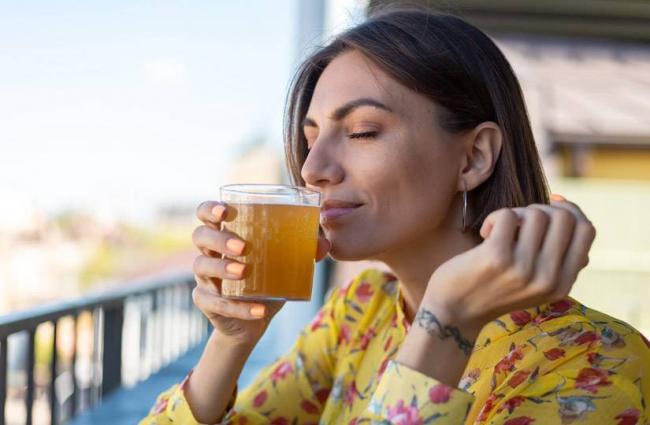 Этот ферментированный напиток из чайного гриба почти не содержит кофеина, зато наполнен полезными для кишечника пробиотиками. Они обязательно разбудят вашу пищеварительную систему и за счет этого взбодрят организм в целом. А шипучесть комбучи придает ей приятное сходство с газировкой.