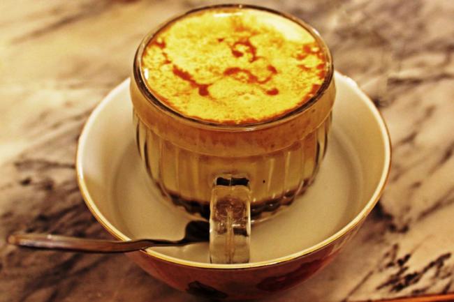 Внешне пенка их желтка напоминает желтые взбитые сливки. Для приготовления одной порции нужен 1 желток куриного яйца, 10 г молотого кофе, фин и сахар.