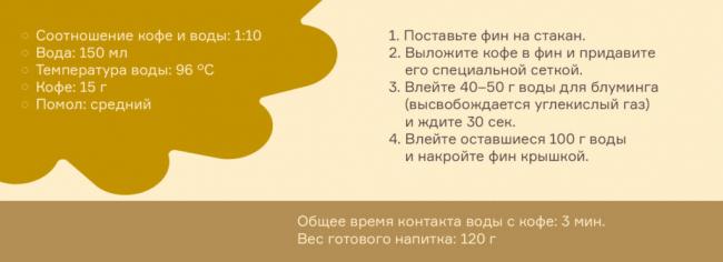 Фин привозят в качестве сувенира и пробуют дома повторить ритуал заваривания. Получается не всегда, так как технологию нужно понять на месте и запомнить. Секрет в том, что горячая жидкость должна медленно капать в стакан – не литься струей. Для этого зерна предварительно проливают и уплотняют прессом. К тому же заварки идет больше, чем для машинного способа.