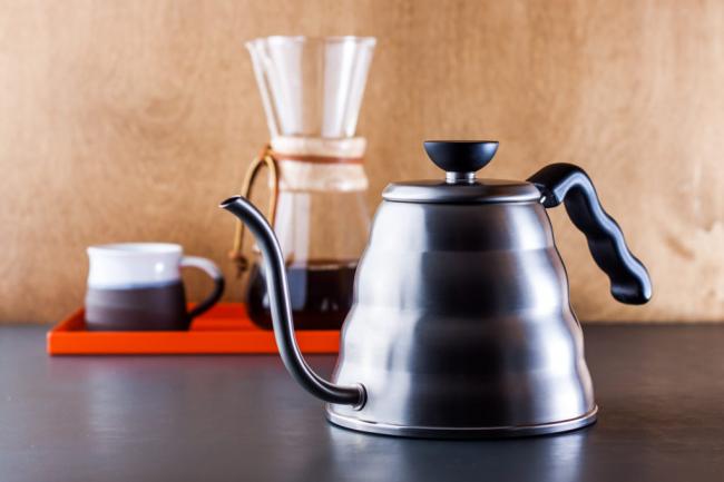 Харио выпускает металлические чайники с узким изогнутым носиком почти от самого дна и пластиковой ручкой. Температуру держат хорошо, ручка удобная, не нагревается, что требуется учитывать при заваривании кофе методом пуровер.