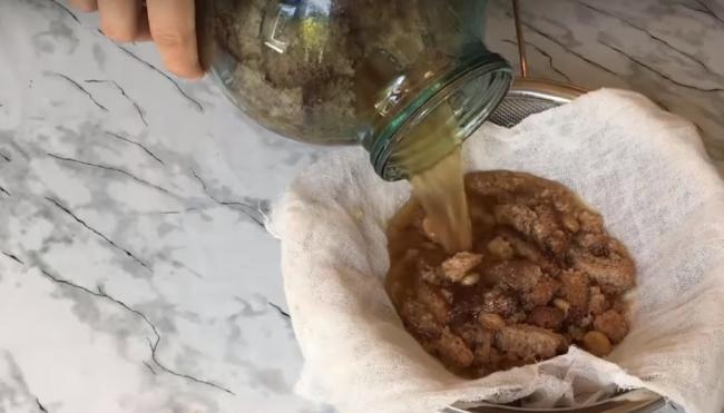 5. После указанного количества дней достаем банку и фильтруем содержимое через ситечко и марлю, чтобы получился напиток без примесей.